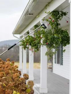 We love the look of this nozzle but we know that when it comes to gardening, you can’t rely on looks alone. The rubberized cork grip is really comfortable and reduces hand and wrist fatigue — which is important when you have a lot of ground to cover. The extra length extends your reach into hanging baskets or window boxes. It offers eight indispensable spray patterns: cone, jet, angled, shower, full, flat, mist, and soaker. The head rotates better than any other nozzle we’ve seen. But our favorite feature by far is the flow control: with a push of the thumb lever you can adjust the pressure for each spray pattern. No more accidentally blasting delicate pansies out of the window box, or beheading tender transplants. You’ll wonder how you ever got along without it!