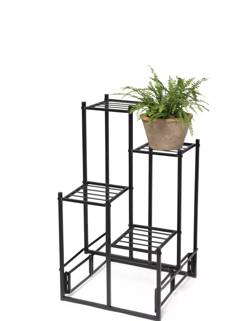 Bold lines and squares characterize this contemporary, four-level plant stand. Create drama by grouping plants of varying heights and textures for maximum effect. Plus, there’s space underneath for your watering can too! Folds easily for storage or transport.
