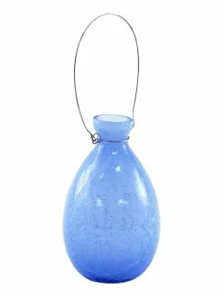The interiors of these hand-blown glass vases are etched, making them translucent. This limits the amount of sunlight that can get through the glass, protecting the roots of plants and flowers. The strong aluminum wire handle that can be used for carrying or used for hanging the vase from a wall hook near a window or in more ambient light. The top of each vase has a small bottleneck opening suitable for a single bud or small bouquet and makes an ideal vase for a café table.