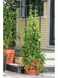 The Bee Bungalow together with the Akoris Garden Tuteur provides a modern/rustic habitat the hippest bees will buzz about! This combo is a perfect nesting opportunity for solitary native “super pollinators” you WANT in your garden! Made of natural oxidized steel, the Bungalow contains hand-cut natural lake bed reeds and drilled-out branches with a variety of openings to make it easy for the bees to find their “home.” The trellis allows edible and ornamental plants to weave throughout, creating a spectacular natural tapestry while providing sturdy support in the garden..