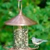 Friends of flight will find delight in this beautiful Bungalow Bird House painted white and topped with verdigris copper. Attracts small feathered-friends with the 1 1/8″ perch-less entry protects from nest-raiding paws, giving birds the freedom to enjoy their home. The base is made of a long-lasting, mango hardwood with a generous 3” hole on back and sliding copper door making clean-up a breeze. Air vents circulate fresh air through the space and drainage holes are in the base.