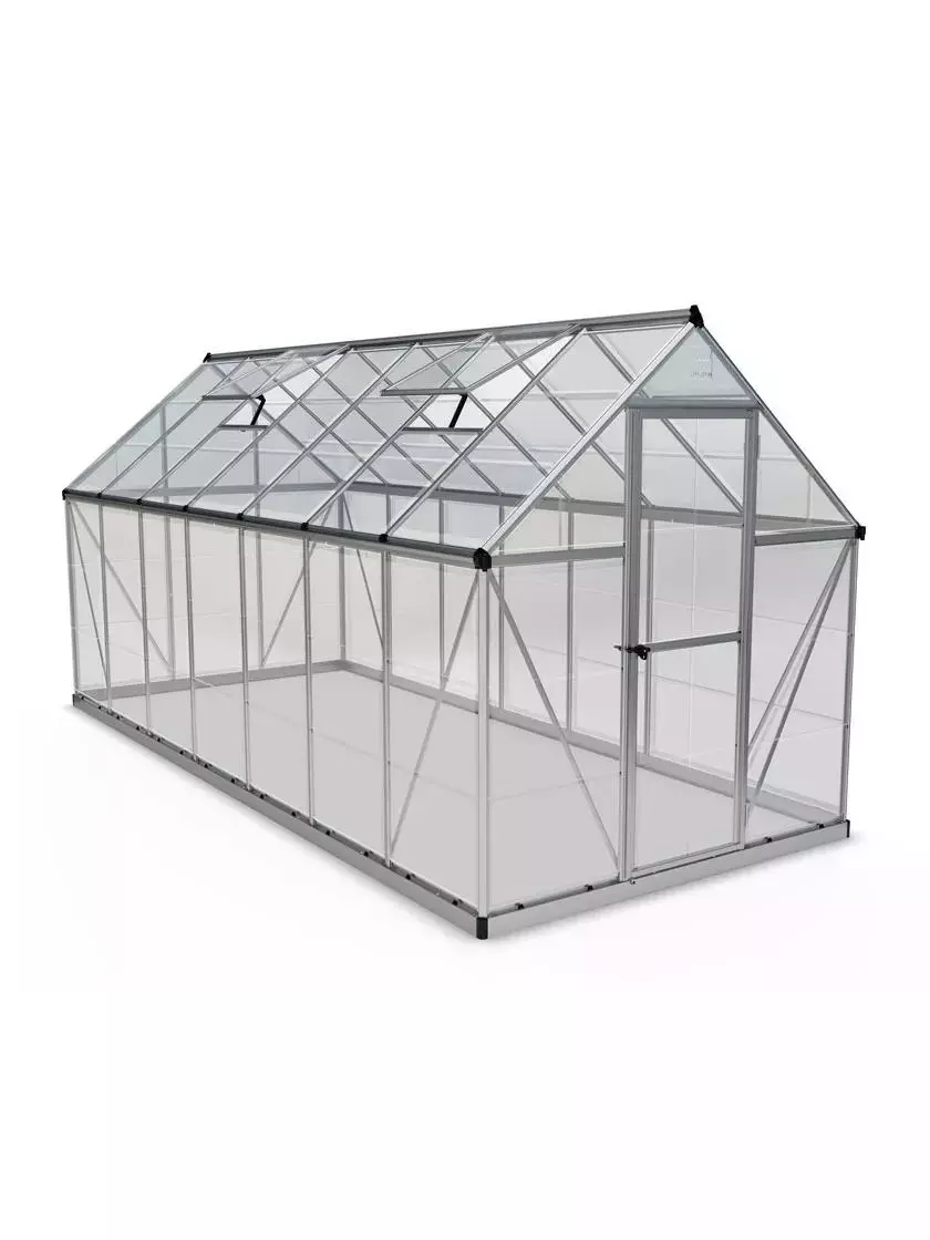 Fill your spring and summer gardens with your own organic fruits and veggies and/or hundreds of mature colorful annuals that you’ve grown from seeds in your private greenhouse. This greenhouse is big enough for all your gardening dreams and includes a rust-resistant galvanized steel base that adds structural support, stability, and alignment. This structure is made of crystal-clear, virtually unbreakable Polycarbonate panels that are simple to slide and lock into position, and a silver aluminum frame. The greenhouse’s adjustable vent windows help maintain the desired temperature and humidity levels and provides ventilation in the heat of the summer. With its sleek and smooth design, the finished result is beautiful, functional, and sturdy. This structure is engineered to withstand all types of weather.