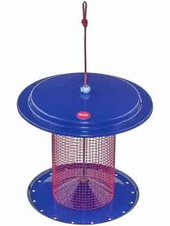 Made in the usa, all metal construction, powder coated top, bottom and screen, center seed diverter, drainage holes in base, paracord hanger with cordlock, capacity: approximately 3 lbs. of seed, mixed or sunflower. Attracts chickadees, cardinals, purple finches, grosbeaks, titmice, nuthatches, goldfinches, house finches, sparrows.