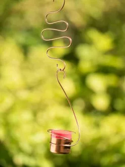 This beautiful feeder was designed by a professional zookeeper at the Arizona-Sonora Desert Museum in Tucson, Arizona, with 22 years of experience caring for hummingbirds. It features a solid copper cup, with a graceful curved perch and hanger to add to the visual appeal. The feeder includes two 1 oz., BPA-free, dishwasher-safe plastic jars with lids so it’s easy to refill.