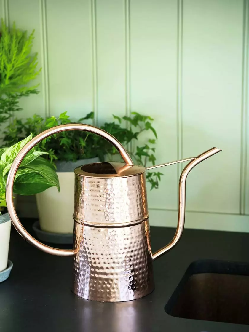 This handsome watering can is perfectly sized for watering indoor plants. The slender, curved spout creates a gentle stream for precision pouring, making it easy to tend small pots, terrariums and dish gardens. The generous 3-quart capacity means fewer trips to the faucet.