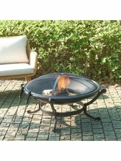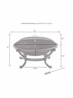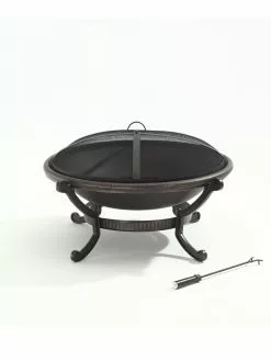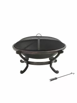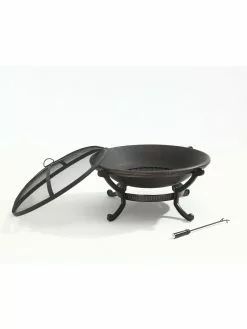 Cozy up around the open flames of the Ashland Fire Pit. The durable weather-resistant steel construction and large fire bowl offer longer, warmer fires for relaxing on a cool evening. Keep sparks to a minimum with the protective mesh guard, while keeping your fire stoked with the steel fire poker that doubles as a screen lift. Sure to be a focal point for your next outdoor event, this fire bowl is as stylish as it is functional.
