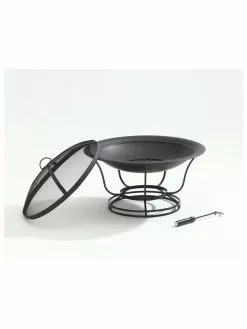 Create a relaxing retreat around the warmth of the Buckner Fire Pit. You’ll enjoy hours of fireside fun with this firepit’s durable, weather-resistant steel construction and 30″ fire bowl. The wide base adds stability while the mesh cover and fire poker keep the flames stoked and the sparks to a minimum. With a simple and elegant design, the Buckner fire pit adds an element of cozy to any outdoor seating set.