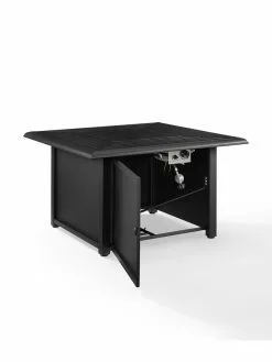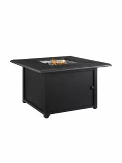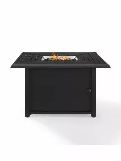 Sure to be the focal point of your outdoor retreat, the Dante Fire Table has a transitional design that can blend with any outdoor space. Constructed of weather-resistant steel, this fire table has a slatted top and solid panels on the base with a hinged door. The gas controls and a rack for a propane tank are located inside the table’s base, keeping them close at hand but out of sight. So pull up your favorite outdoor chair and enjoy a relaxing night by your backyard fire table.