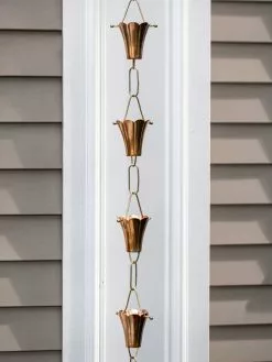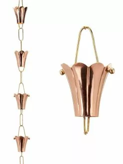 GSC Fluted Flower Pure Copper Rain Chain, 8.5′