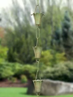 GSC Fluted Flower Pure Copper Rain Chain, 8.5′