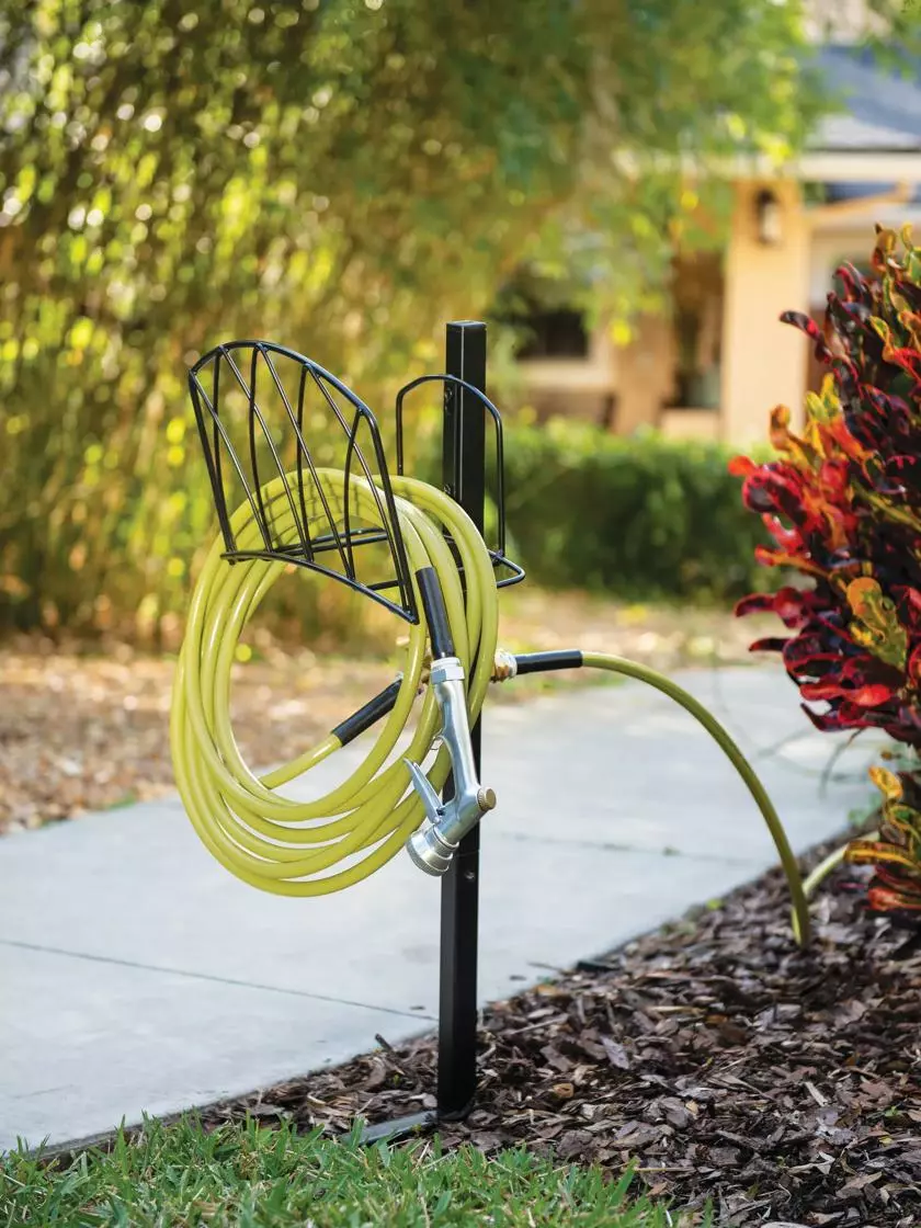 Keep your garden hose tidy and within reach — easily and beautifully. All metal construction is durable and stylish. Mounts easily to any flat surface or post — or use with our Deluxe Post with Faucet for a handy hose right in the garden, where you most need it.