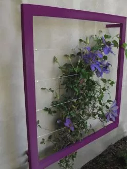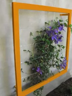 Create an instantly stylish vertical garden on any wall or fence with this modern wall trellis by Terra Trellis. Designed and hand-crafted in the U.S. from steel and stainless steel cable, finished in brilliant water-resistant powder-coated colors or a natural oxide patina. Welded brackets stand out 4″ from wall allowing edible or ornamental vines to weave throughout, creating a spectacular natural tapestry. Beautiful in multiples is lightweight and easy to install.