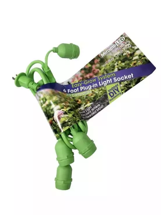 Grow your plants exactly how you wish using the 6’ LED-ready Easy-Grow 4-Socket String Light fixture. Acting like an extension cord for your grow bulbs, this socket set lets you place plants anywhere and fasten the lighting to anything with ease. Bulbs not included.