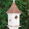 The all-new Palazzo Bird Feeder by Good Directions combines the classic lines of Eastern design with contemporary Western flair. This easy-to-clean tube feeder, is topped with a polished copper, pagoda-style roof. Handsome rivets embellish each edge for a distinctive, eye-catching effect. The lipped feeding tray — with convenient drain holes built in — prevents waste and keeps seed dry for your feathered friends. . Holds 1-1/3 pounds of seed.