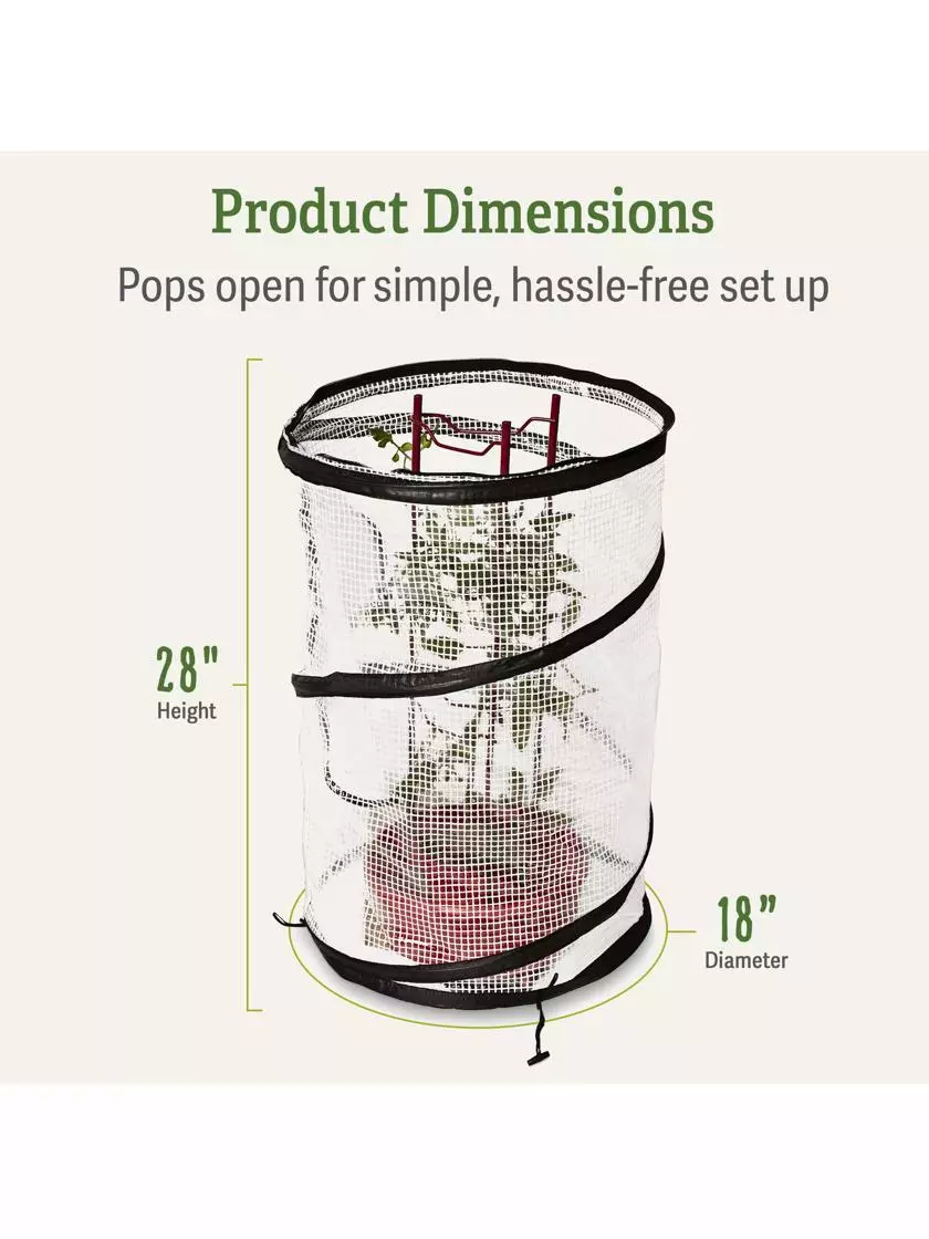 Mini-growhouse protects tomato transplants from cold temperatures and chilly winds, so you can set plants out in the garden weeks earlier. You’ll be amazed at how much faster plants grow — which means an earlier harvest of your first juicy fruits! Set it up in seconds: Release the toggles and it pops open, ready to place over plants. We made it extra large — 18″ in diameter and 28″ high — so you can leave it in place to protect plants longer. The top is made from mesh to allow warm air to escape, preventing overheating, and it also lets water in. When the weather warms up, you can unzip the top and leave it open for even better ventilation. Also good for peppers, eggplants and other heat-loving plants. Made from durable, reinforced greenhouse fabric. Flattens for easy off-season storage.