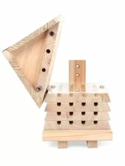 Attract pollinating bees to the garden and watch how they work! Flip the roof up to reveal a clear panel through which you can follow their activity in the stacking trays below. Follow the nesting activity and larvae development of several solitary bee species, such as leafcutter, mason, orchard, and carder bees.
