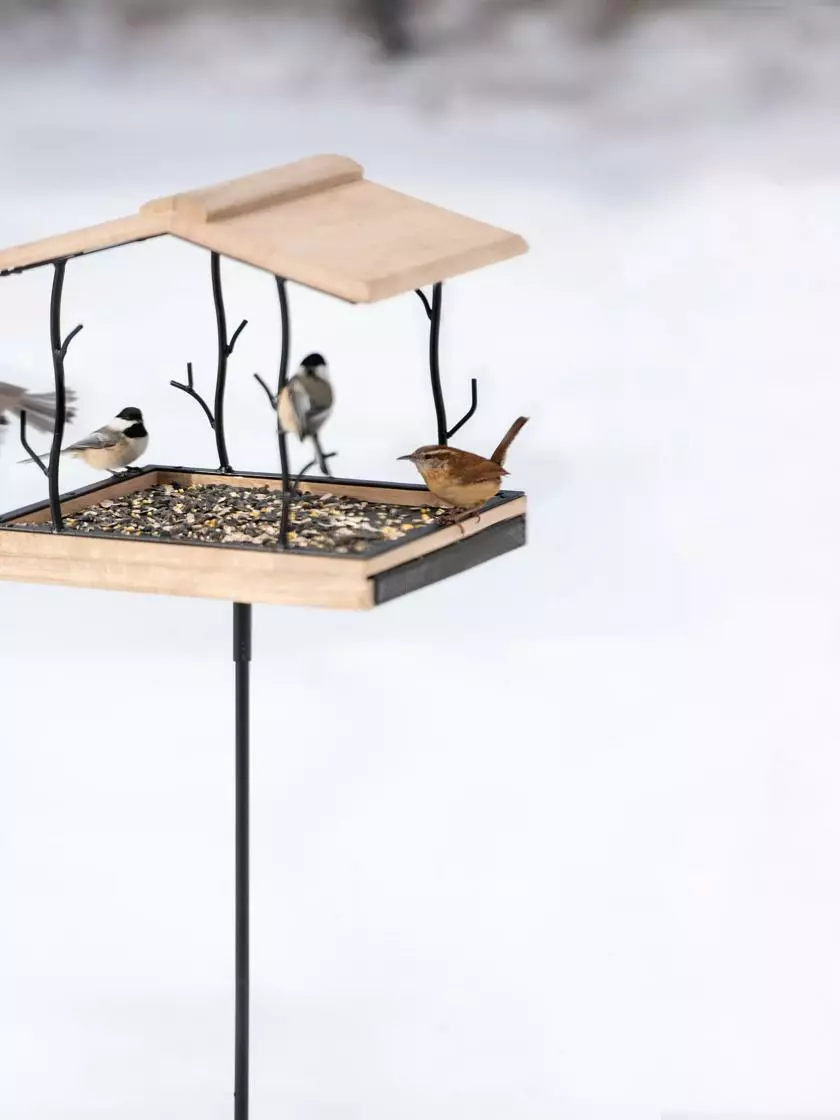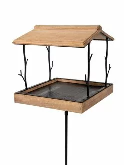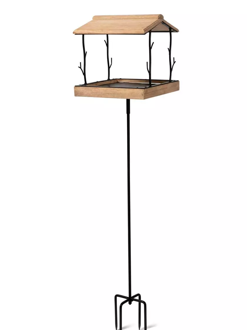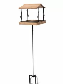 Sculpture and feeder in one! Large platform allows you to offer your backyard friends a veritable smorgasbord — from seeds, to nuts, and even mealworms. Removable metal mesh floor for cleaning and a sturdy-footed stake gives it ample stability.