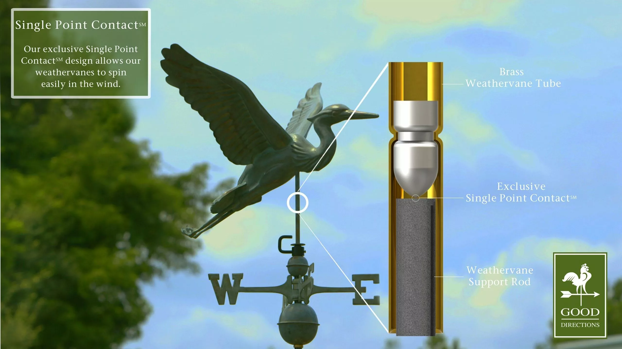 - The exclusive Single Point Contact ℠ design allows our weathervanes to spin easily in the wind.