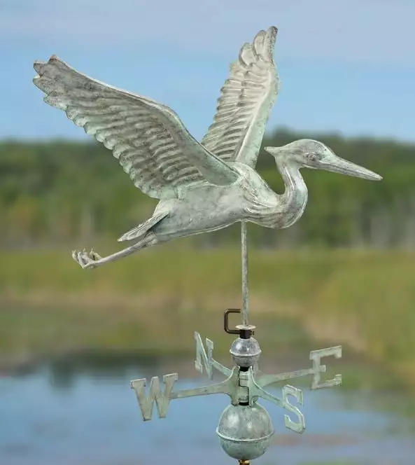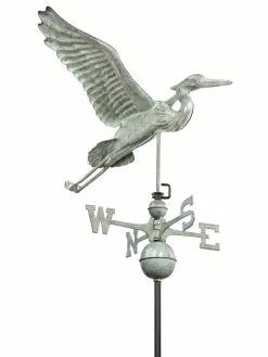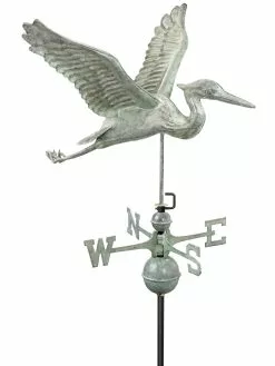 Heading away from its marsh pond nest, this Great Blue Heron is ready to adorn the rooftop of your home, garage, cupola, barn or gazebo. Good Directions’ pure copper weathervanes are unsurpassed in style, quality, and durability – perfect for the house-proud homeowner. Bring The Art of Outdoor Living℠ to your home with this heirloom-quality piece. Includes an all-weather assembly rod, solid brass directionals and copper spacer balls. A 401AL Roof Mount recommended, sold separately (SKU 8593538 Adjustable Weathervane Roof Mount)