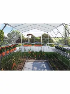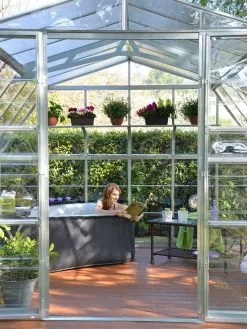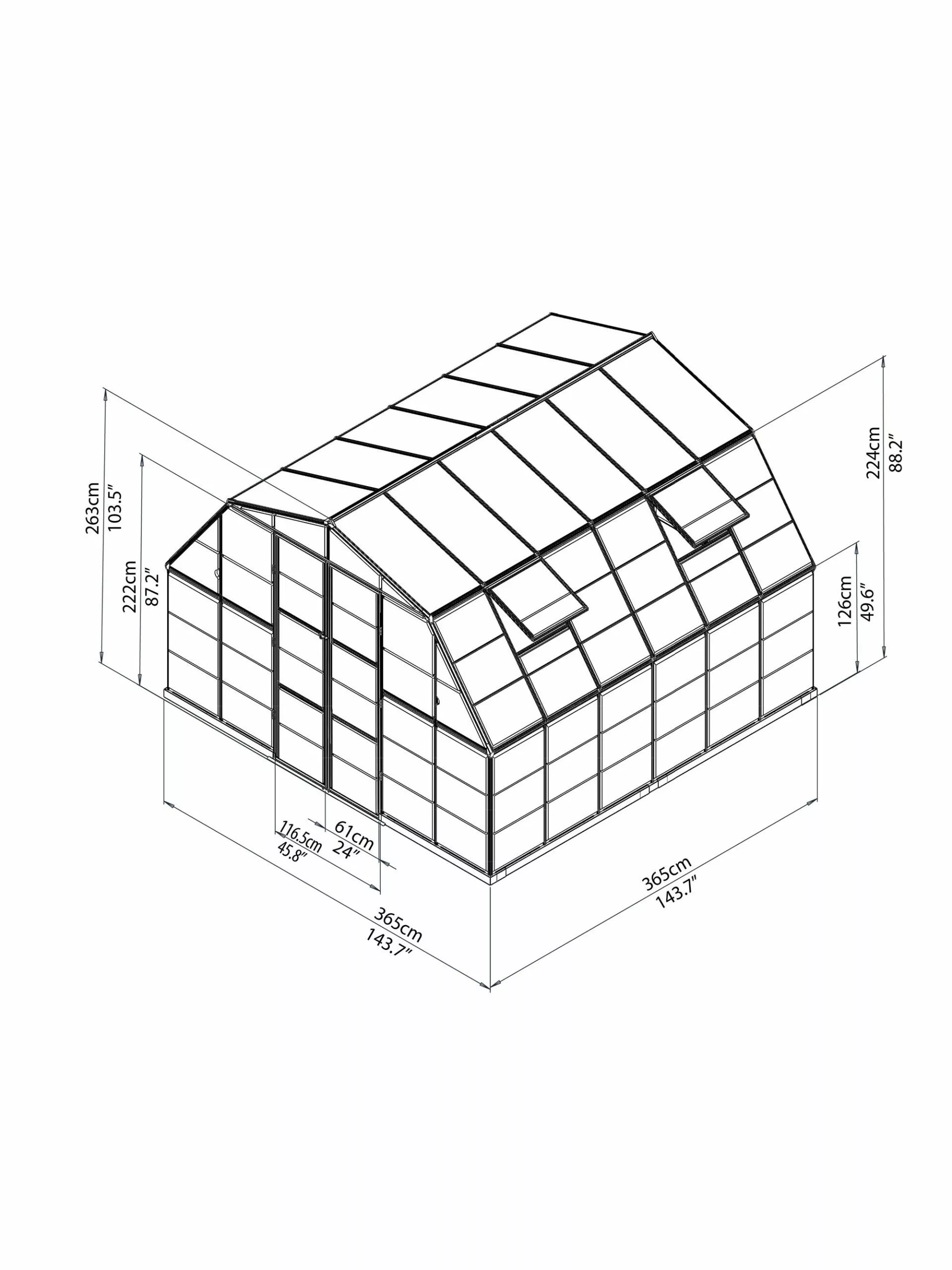 The Palram Americana™ is a sophisticated, maintenance-free greenhouse that features virtually unbreakable, advanced polycarbonate panels, twin-wall roof panels and crystal-clear side panels. It comes with a reinforced, rust resistant aluminum frame and galvanized steel perimeter base with a hinged, lockable double door and low-threshold for easy access. The barn-shaped design is classic and offers plenty head room. Also included: 2 vent windows to maintain proper temperature and moisture levels. Start growing a bounty of vegetables and enjoy the fruits of your labor year-round with the Americana Greenhouse.